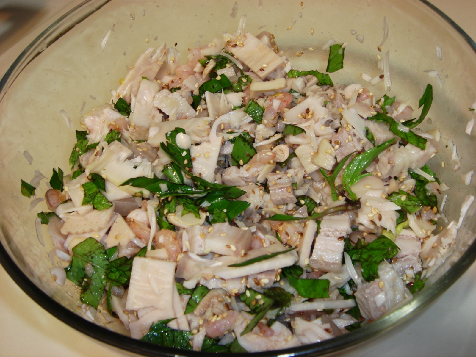 Món ăn chỉ với một ít mít non trộn cùng với rau răm và lạc rang, không quá cầu kỳ.