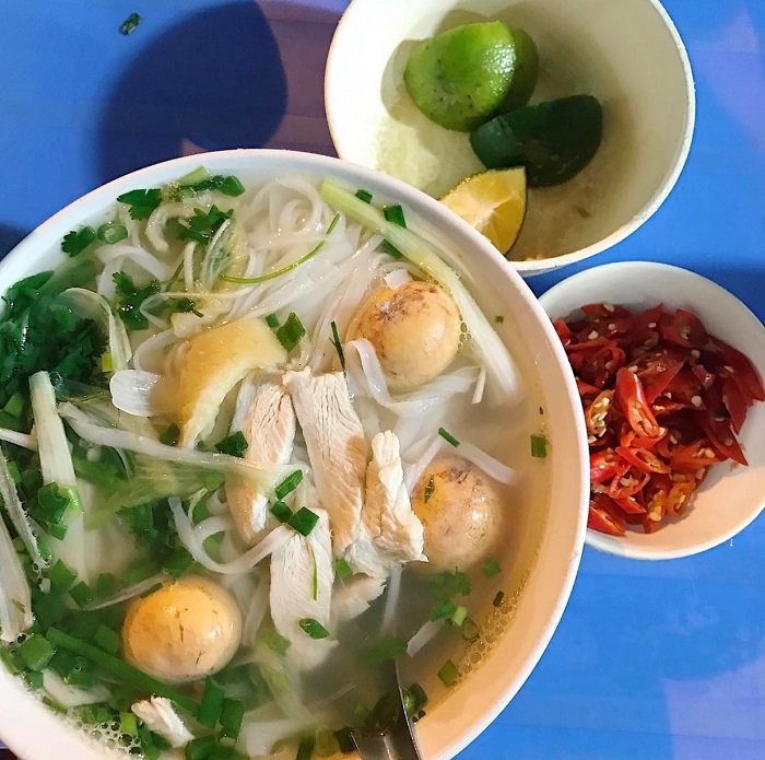Điểm nổi bật ở đây là gà ngon đúng chuẩn vị. Miếng thịt gà thì mềm và ngọt, khi ăn rất vừa miệng. Nước dùng thì đậm đà, kết hợp cùng hành lá, tràng trứng, sợi phở mướt và từng miếng gà thớ nào ra thớ đó khiến bạn ăn rồi còn cảm thấy thòm thèm.