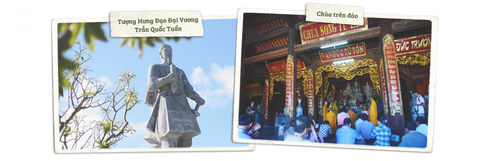 Quần đảo Trường Sa có 4 ngôi chùa kiến trúc thuần Việt, làm từ nhiều loại gỗ quý chịu được độ mặn của nước biển. Chùa trên đảo Trường Sa Lớn uy nghi tọa lạc ngay giữa trung tâm thị trấn. Trong chùa có 6 tượng Phật được làm từ ngọc màu trắng. Đây là nơi mà bất cứ ai đến cũng vào thăm, thắp nén hương và được sư thầy trụ trì tặng chiếc vòng đeo tay mang ý nghĩa bình an.