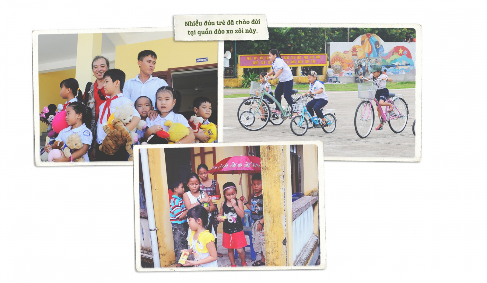 Nhiều người dân từ đất liền đã vượt hàng trăm hải lý ra đảo sinh sống, an cư, lập nghiệp từ rất lâu. Nhiều đứa trẻ đã chào đời tại quần đảo xa xôi này. Những đứa bé Trường Sa tạo nên hình ảnh thú vị, khi chúng mặc bộ đồ như quân phục hải quân, lon ton hớn hở theo cha mẹ đi đón khách ra thăm đảo. Có những giáo viên rất trẻ xung phong ra đảo dạy học. Ở Trường Sa, Sinh Tồn, Sơn Ca, xã đảo Nam Yết, xã đảo Song Tử Tây... đều có trường mẫu giáo, trường tiểu học. Sau khi học hết cấp 1, các bé sẽ được chuyển vào đất liền học tiếp.